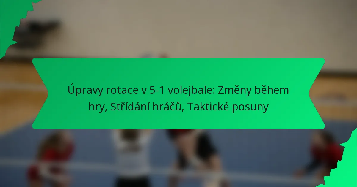 Úpravy rotace v systému 5-1 ve volejbale se týkají strategických změn provedených během zápasu za účelem optimalizace pozic hráčů a zlepšení výkonu týmu. Tyto úpravy jsou klíčové pro udržení efektivního herního stylu a přizpůsobení se taktice soupeře.